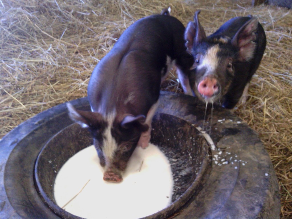 We raise our vegetables without the use of artificial fertilizers, pesticides, or herbicides. Instead, we use such methods as companion planting and crop rotation to grow healthy food. We feed our chickens, goats, and pigs organic feed. All our animals have access to the outdoors and our goats and sheep eat from our pasture. We also have Concord grapes and maple syrup. (See below for syrup prices.)